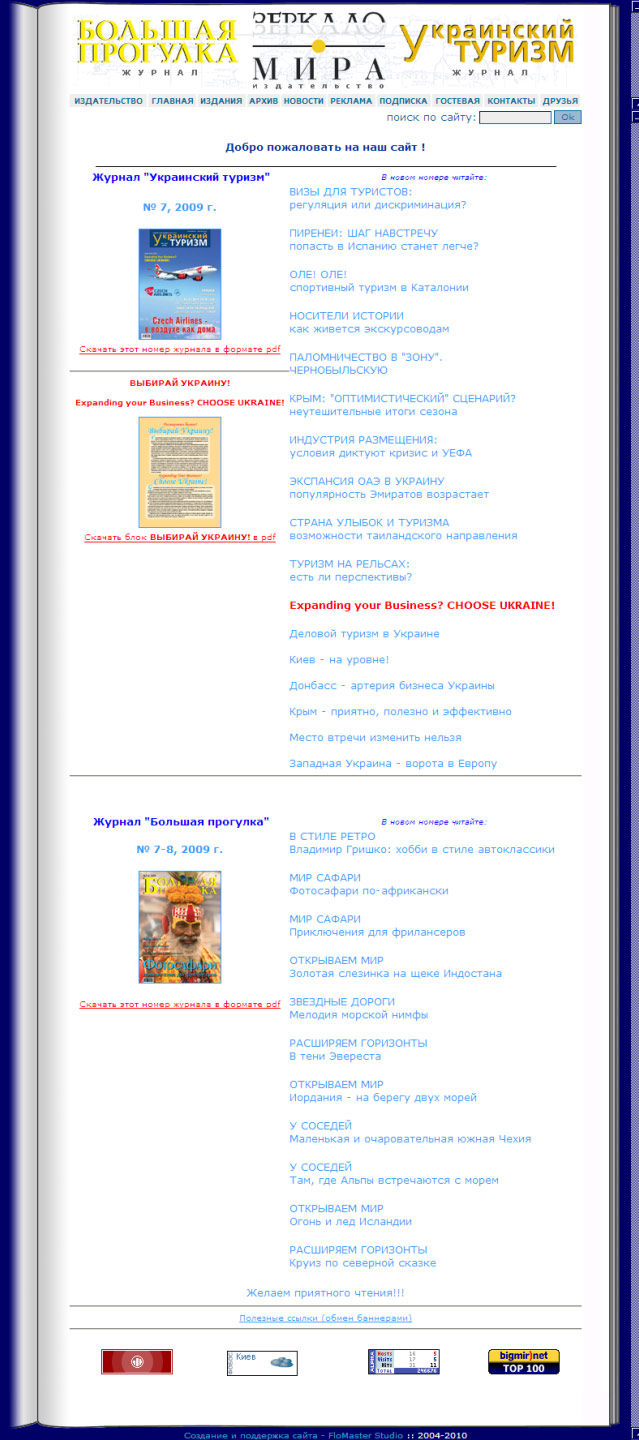 Журнали: "Велика прогулянка" - видання, що висвітлює сфери туризму, відпочинку, дозвілля. "Український Туризм" - інформаційно-аналітичне видання, орієнтоване на професіоналів туристичного ринку.