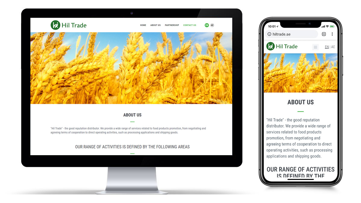 У рамках загального замовлення з розробки логотипу та фірмового стилю було виконано роботу з розробки іміджевого сайту міжнародної компанії “Hil Trade”. Дизайн сайту розроблений у сучасному, мінімалістичному стилі з використанням корпоративних кольорів замовника. Блокове подання інформації дає можливість легко вивчити інформацію та максимально сконцентрувати увагу на послугах компанії.
