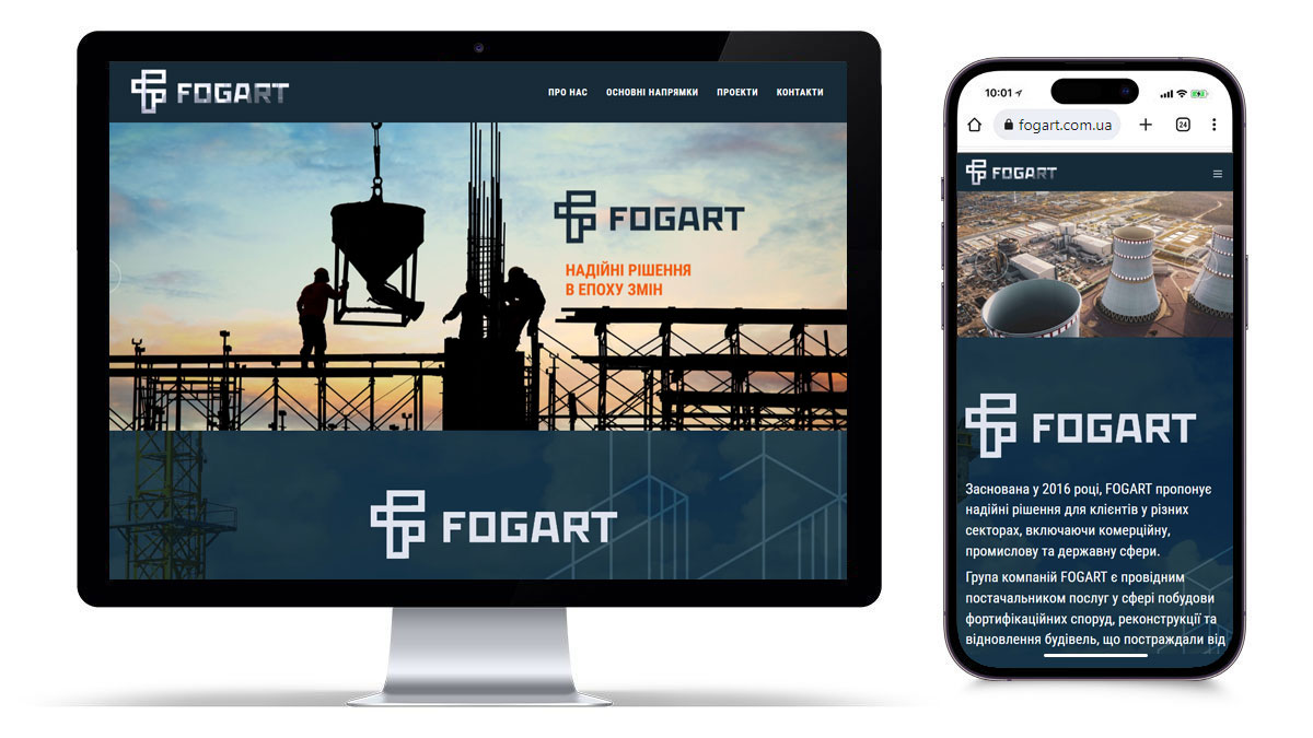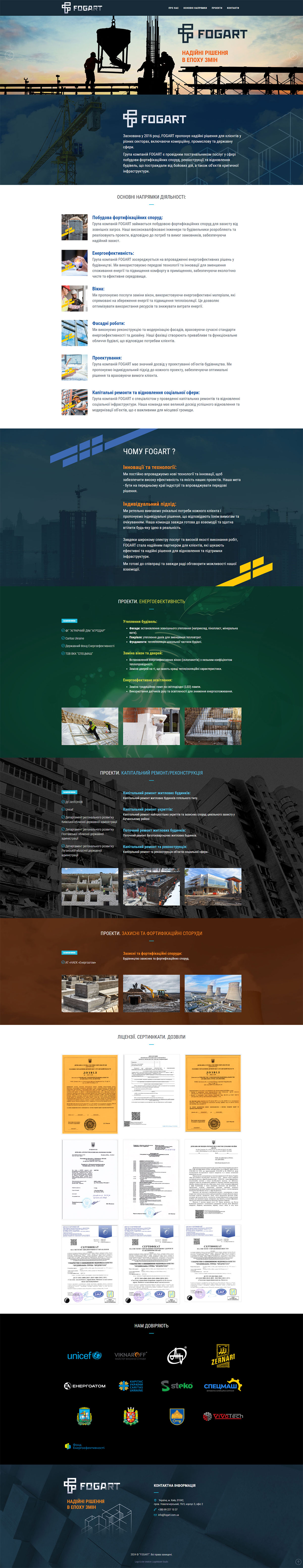 fogart.com.uaУ рамках замовлення було виконано роботу з розробки landing page сайту компанії FOGART, яка є провідним постачальником послуг у сфері побудови фортифікаційних споруд, реконструкції та відновлення постраждалих від бойових дій будівель, а також об'єктів критичної інфраструктури (Україна, м.Київ).