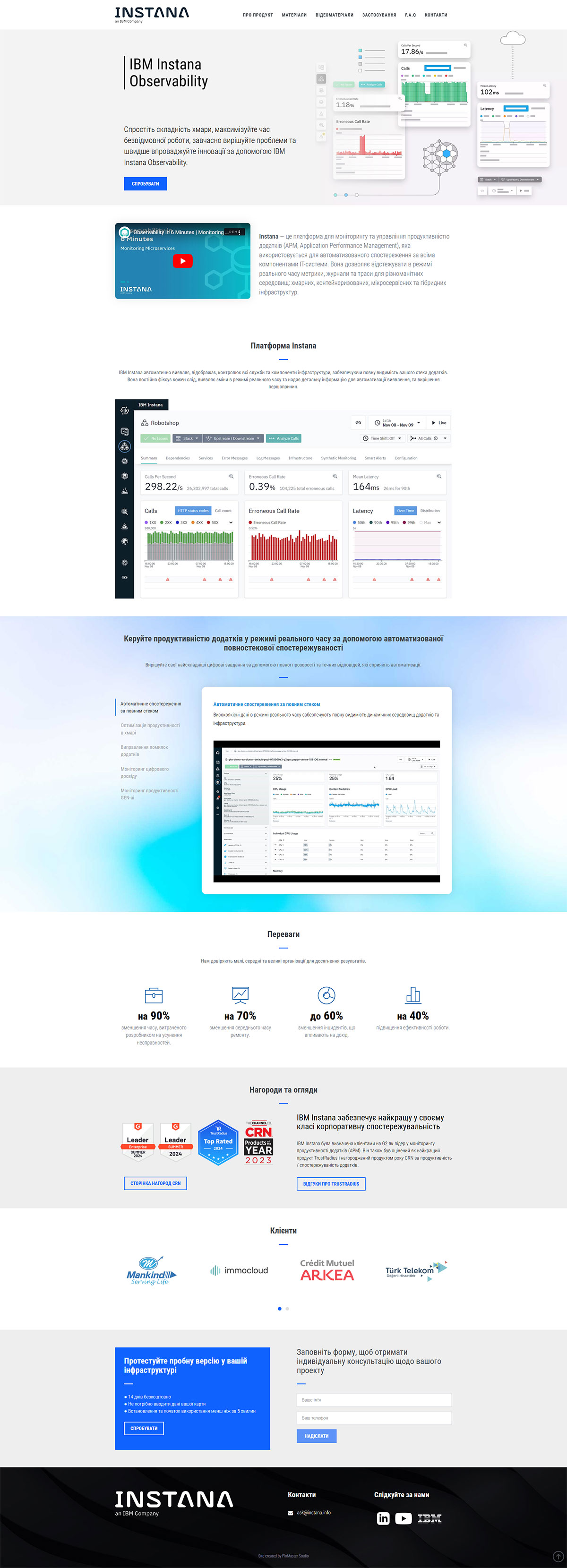instana.infoInstana — це платформа для моніторингу та управління продуктивністю додатків (APM, Application Performance Management), яка використовується для автоматизованого спостереження за всіма компонентами IT-системи. Вона дозволяє відстежувати в режимі реального часу метрики, журнали та траси для різноманітних середовищ: хмарних, контейнеризованих, мікросервісних та гібридних інфраструктур.