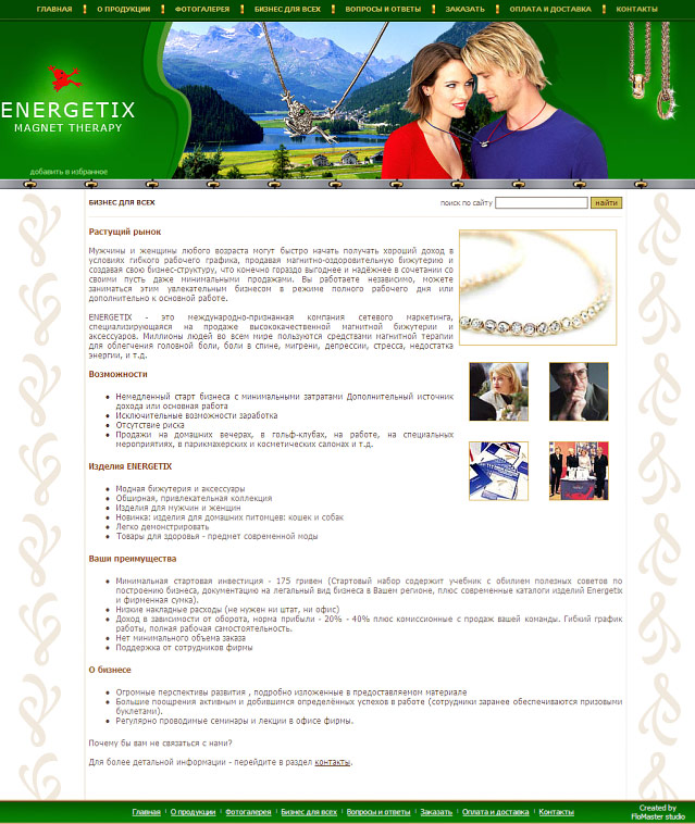 Продаж лікувально-оздоровчої магнітної біжутерії та аксесуарів.