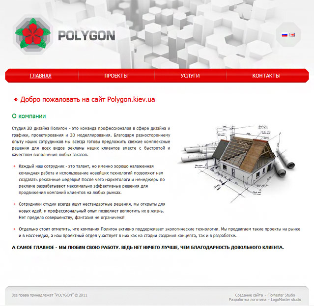 www.polygon.kiev.uaСтудія 3D дизайну "POLYGON" - команда професіоналів у сфері дизайну та графіки, проектування та 3D моделювання. Клієнтами студії є українські та зарубіжні архітектурні та проектні бюро, а також компанії з різних сфер бізнесу, які шукають нестандартні рішення для своїх рекламних кампаній та хочуть презентувати свою продукцію на новому технологічному рівні.