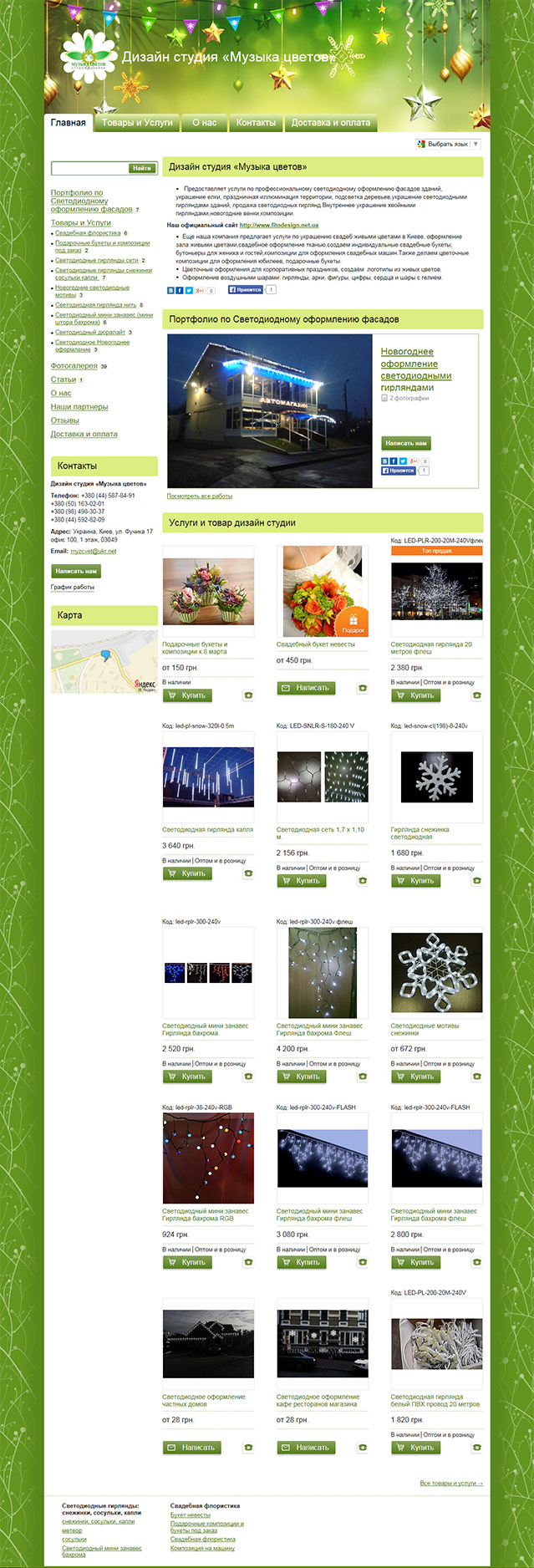 www.fitolight.com.uaДизайн-студія надає послуги з професійного світлодіодного оформлення фасадів будівель, прикраса ялинки, святкова ілюмінація території, підсвічування дерев, прикраса світлодіодними гірляндами будівель, продаж світлодіодних гірлянд.