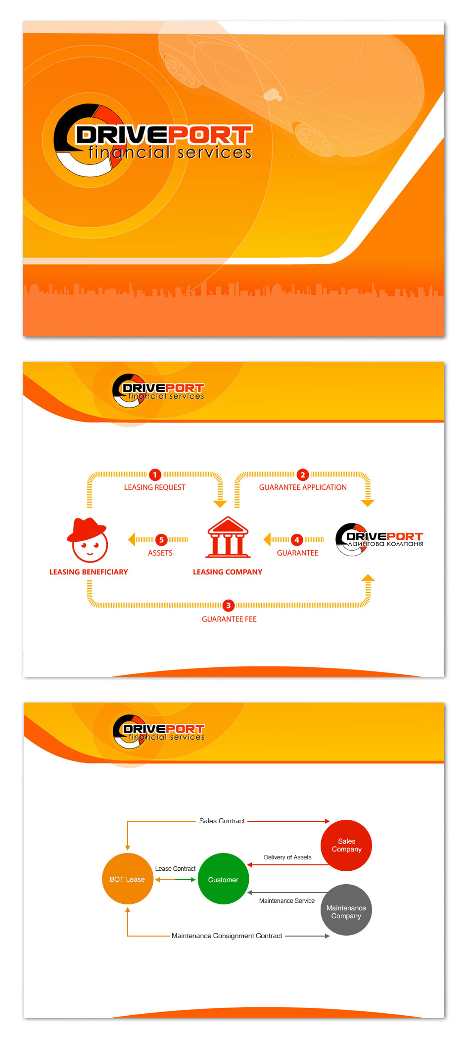 До студії звернулися за створенням універсального шаблону оформлення презентації компанії "DRIVEPORT" Financial Service.