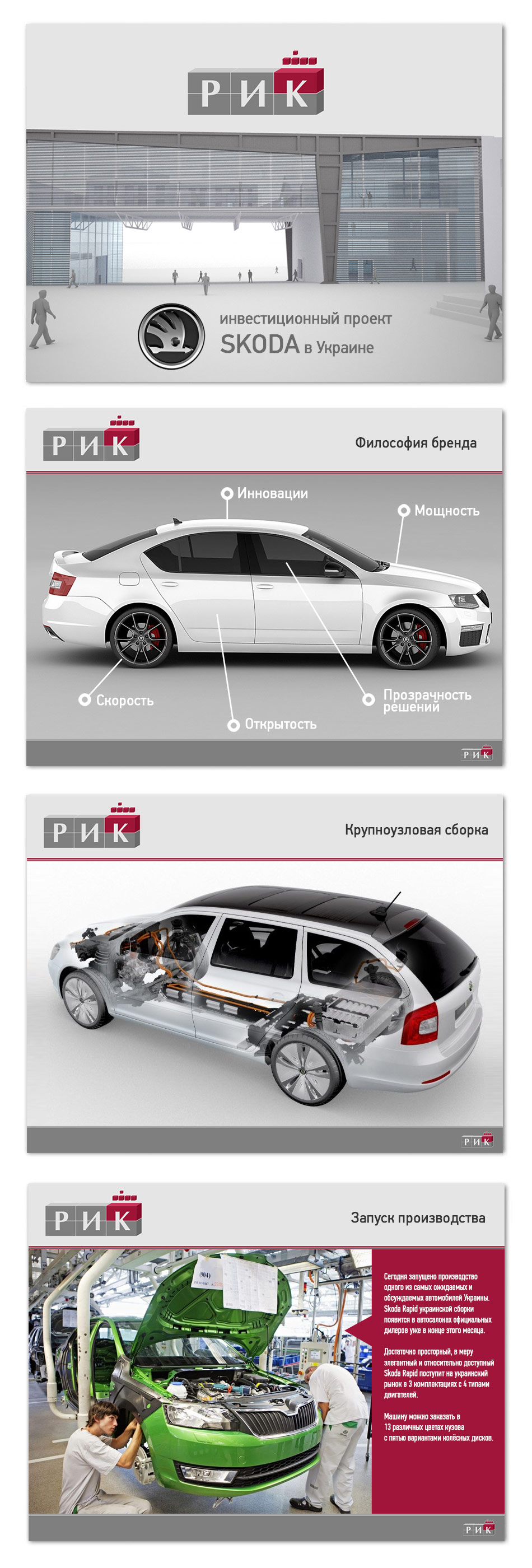 До студії звернулися за створенням шаблону оформлення презентації компанії "РІК" - інвестиційний проект з виробництва автомобілів. У 2007 році була введена в дію друга черга по конвеєрному виробництву глибокого складання легкових автомобілів. Його потужності розраховані на виробництво 35 тис. автомобілів на рік, що дозволить створити 1000 робочих місць.