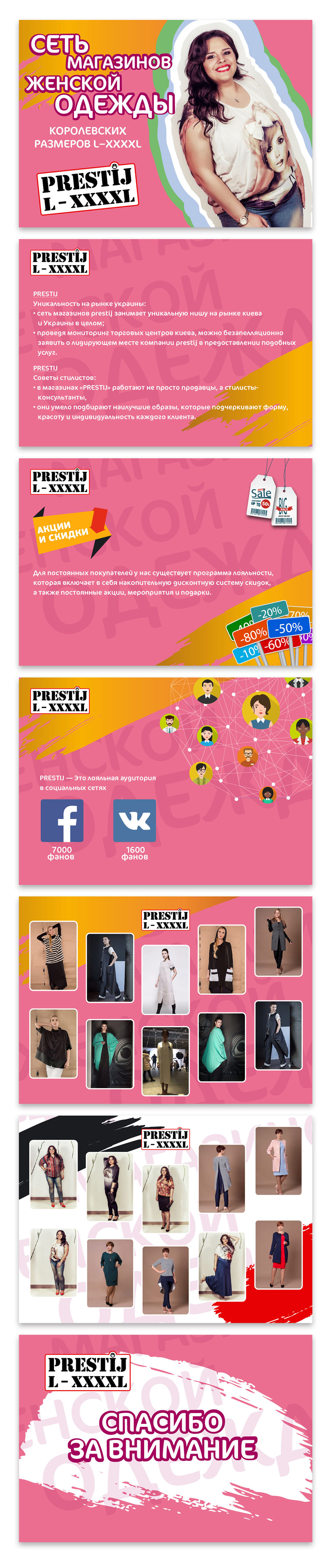 У студію звернулися за розробкою презентації, яка б красиво, сучасно та стильно представляла мережу магазинів. Створення дизайну та оформленням презентації було виконано російською мовою в PowerPoint та PDF на 12 сторінок. Весь процес розробки поетапно узгоджувався із Замовником.