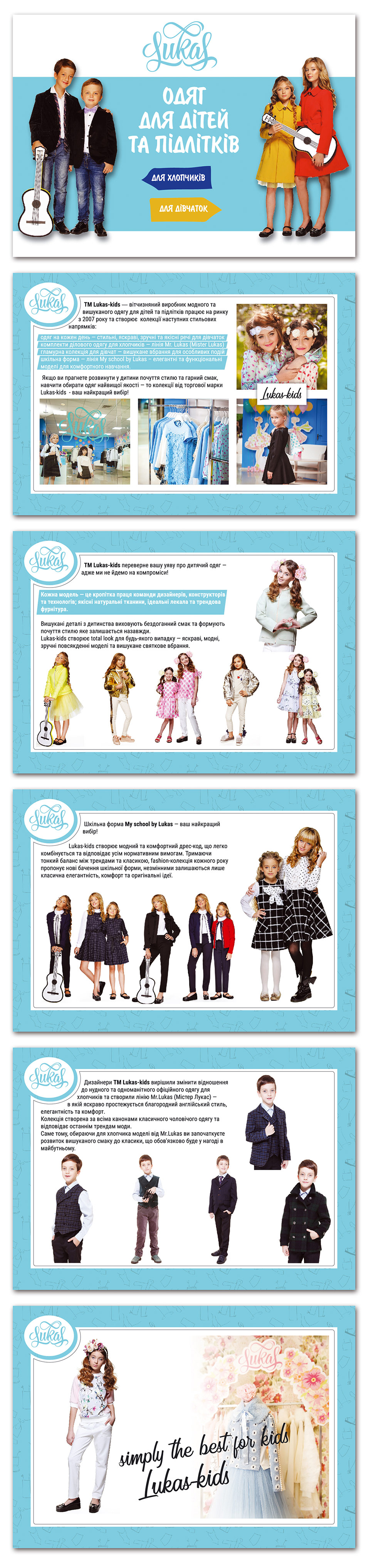 TM “Lukas-kids” - український виробник модного та вишуканого одягу для дітей та підлітків. Працює на ринку з 2007 року та створює колекції наступних стильових напрямків:
