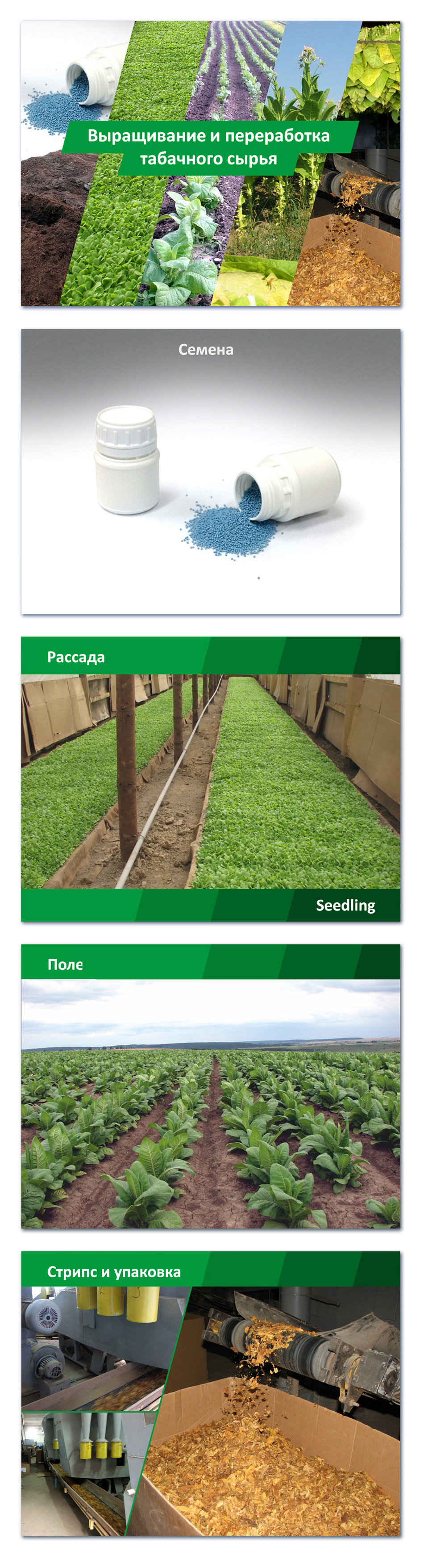 До студії звернулися за створенням дизайну та оформленням презентації з вирощування та переробки тютюнової сировини, без створення логотипу, але з розробкою індивідуального фірмового стилю. У процесі роботи всі матеріали були опрацьовані, розроблено правильне та ємне подання інформації, оскільки презентація призначалася для Міністерства Аграрної політики та продовольства України.