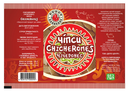 Розробка дизайну пакування мексиканських чіпсів. Закуска зі спеціально обсмаженої свинячої шкіри, яка подається як супровід до пива, текіли та інших напоїв.