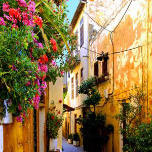 Продовжуючи розповідь про місто, хочеться помітити, що воно дуже добре зберегло свій старовинний колорит. Нас дуже вразили венеціанські, турецькі та єврейські квартали з дивовижними будинками. Вулички тут – дуже вузькі. Якщо встати посередині і витягнути руки в обидві сторони, то можна руками торкнутися протилежних стін будинків. Архітектура будинків вражає своїми формами та фресками. На багатьох будинках збереглися елементи, яким понад 200 (а може й більше) років – це й бронзові ручки на дверях, і віконниці з химерними петлями, і старовинні ліхтарі та багато чого інше… Причому, що найдивовижніше, у багатьох будинках живуть люди – переважно пенсіонери, дуже колоритні та привітні греки. Майже в кожній вуличці, ті що ближче до центру міста, є маленькі ресторани (при чому деякі з них - іноземною кухнею), таверни, кафе-кондитерські, бари. Основний вид транспорту тут - мопеди, на яких місцеві жителі їздять дуже добре, жваво розвертаючись або повертаючи в дуже вузькі вулиці завширшки іноді в 50-80 сантиметрів. До речі, скрізь дуже багато яскравих кольорів, ліан, пальм. Видно, що за цим усім стежать і люблять доглядати, т.к. багато рослин знаходяться просто у дивовижному вигляді.
